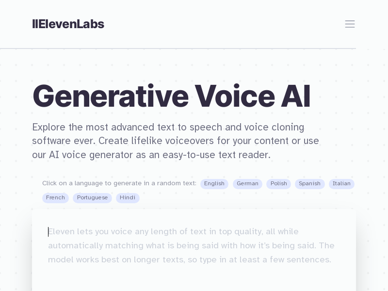 ElevenLabs 不仅能帮你智能配音,还能帮你制作视频、AI 变声、制作 AI 有声书、翻译配音等,能帮你轻松提高音频、视频的创作效率与质量。