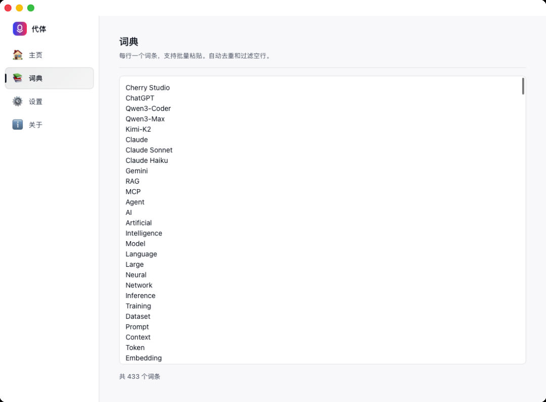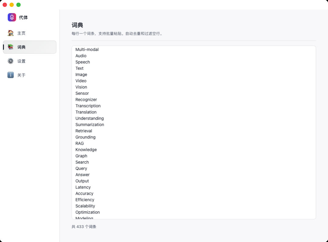 比如说“AI”经常给我识别成“AR”,然后我加在词库里也不管用,那我就加在这里。