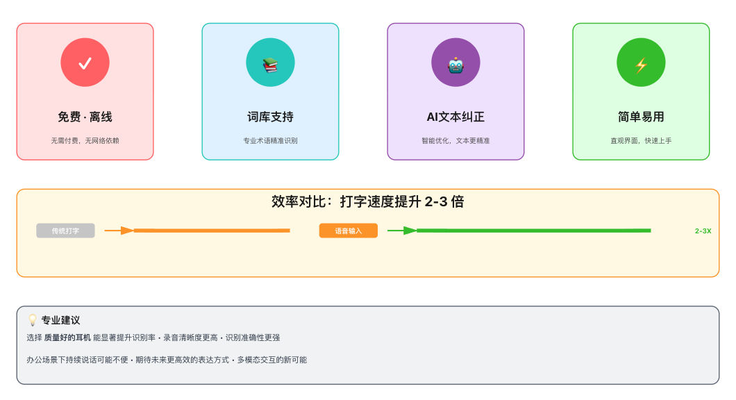 最后,不得不说,办公场景下,语音打字还是不太方便,希望未来有更高效和更适合的输入方式出现。