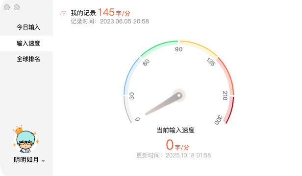 我查看我搜狗的最高打字速度是 145字/分钟,这确实比我最高纪录还高。从这个打字速度罗盘上也可以体现出196字/分钟,确实还算不错的打字速度了。