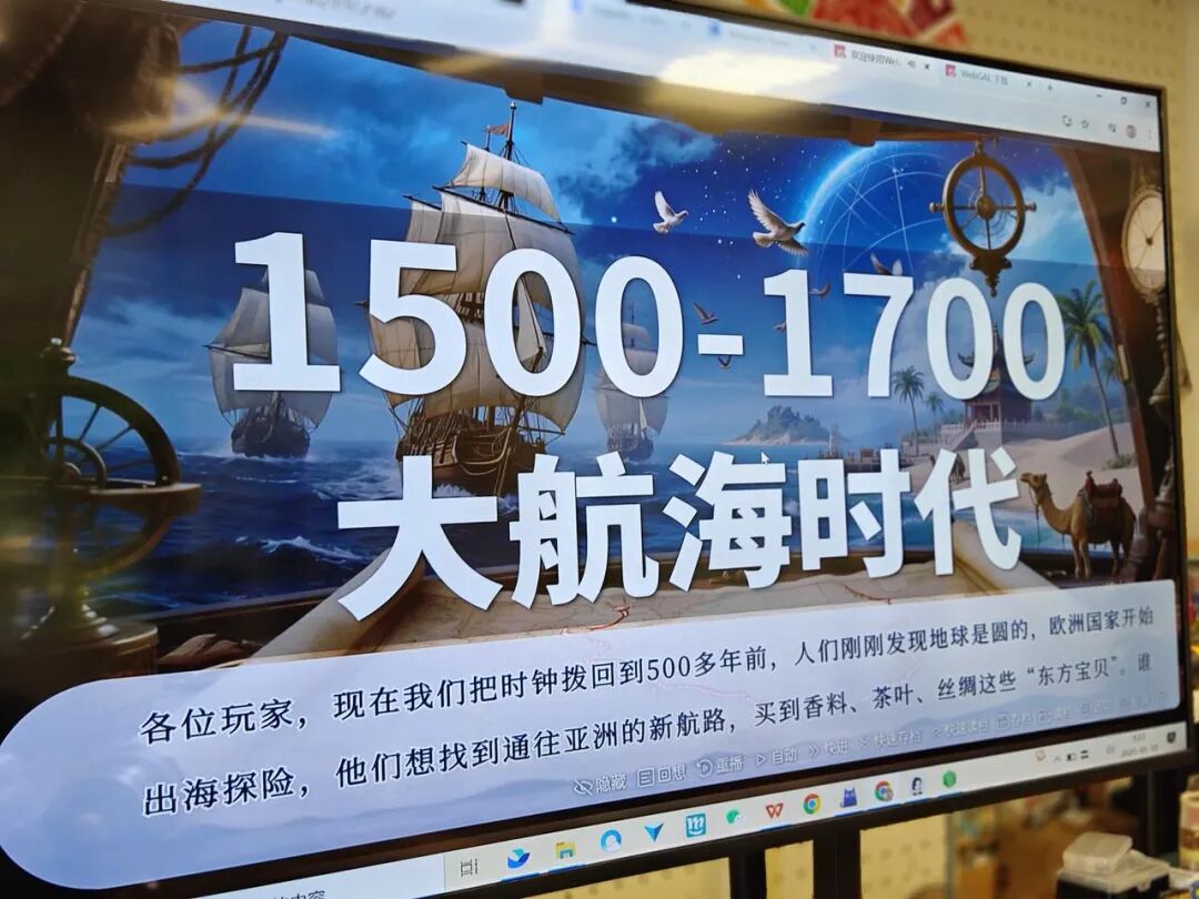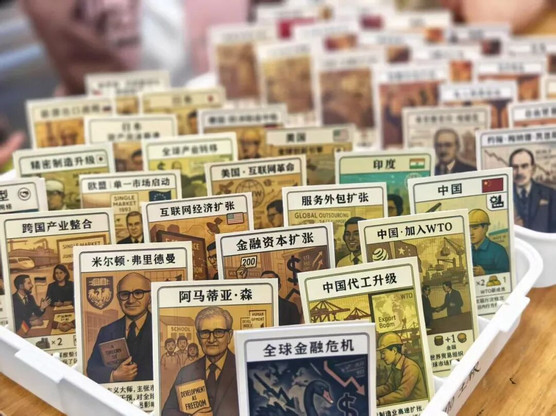 他的核心思路很简单,用AI和他们一起搭建一款卡牌模拟游戏,让学生能够化身不同国家代表,从大航海时代一直推演到人工智能时代,在一场场决策和对抗中体验全球贸易的演化。