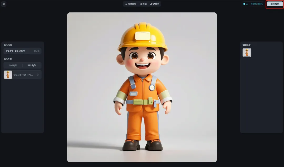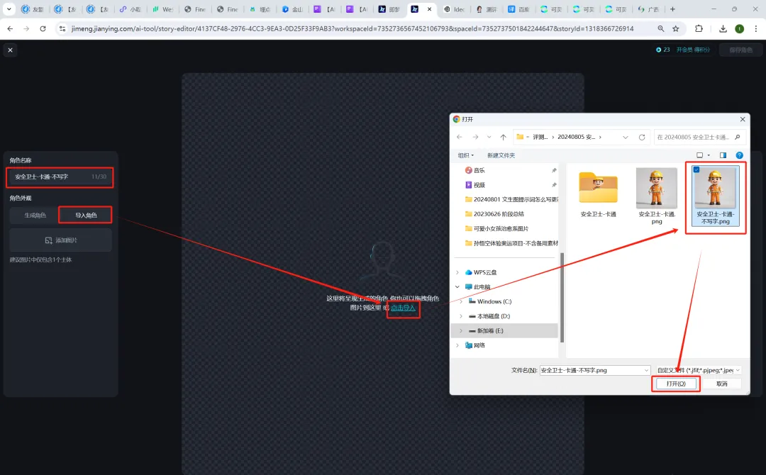 进入角色编辑页面,输入角色名称后,点击【导入角色】——>【点击导入】,选择刚才用画布优化好的卡通人物形象图片,点击【打开】。