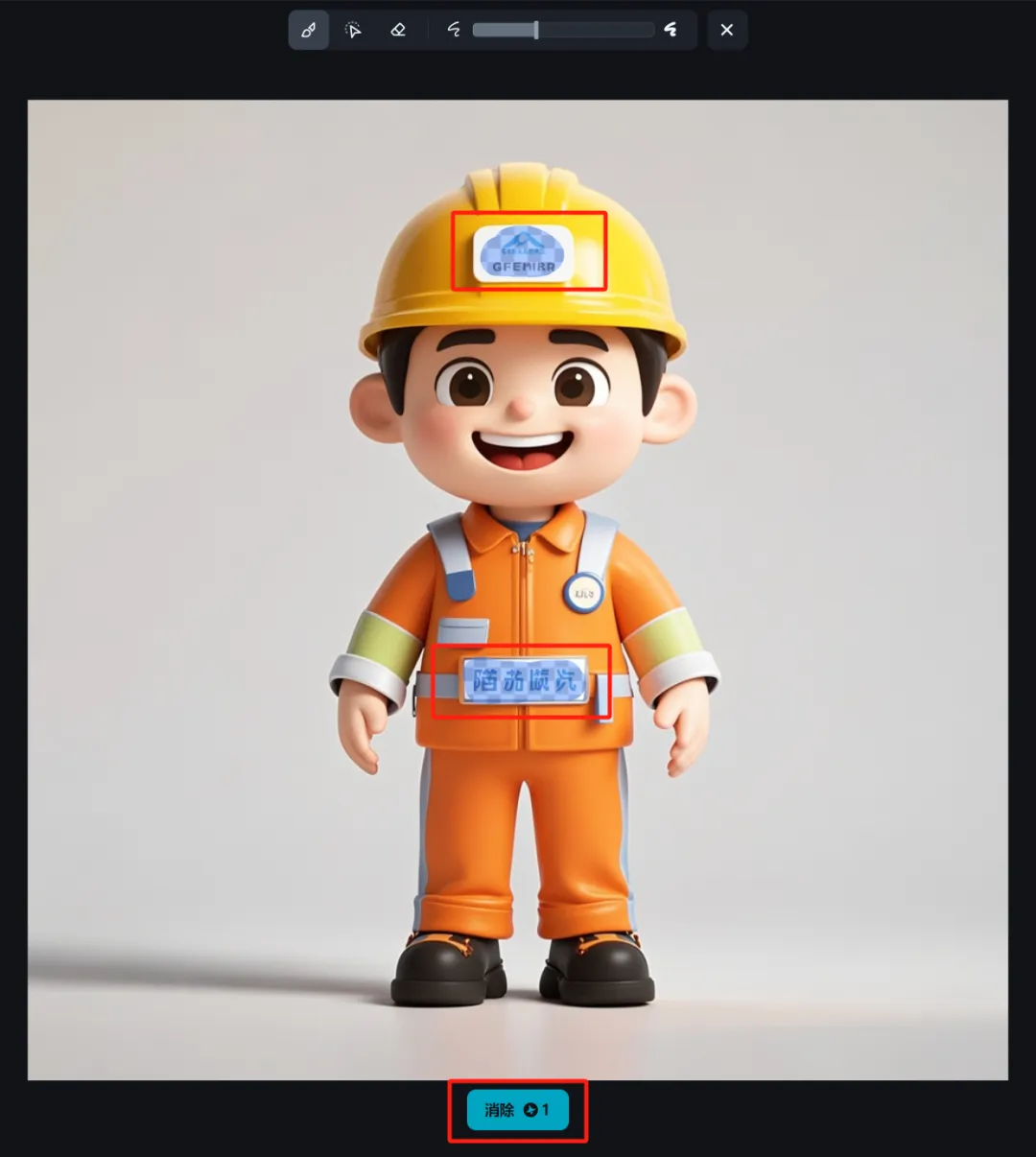 将不符合预期的文字乱码和图标用消除笔涂抹,然后点击【消除】。