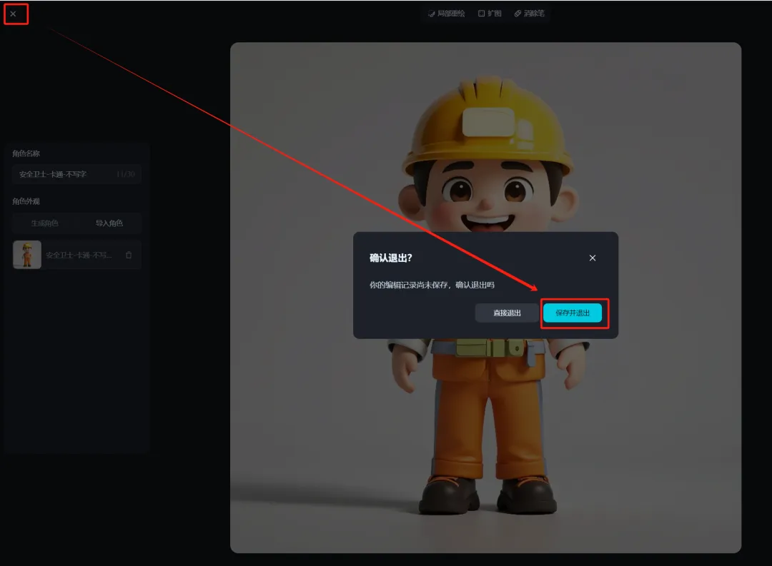 保存成功后,点击左上角【x】,弹出确认退出窗口,点击【保存并退出】。