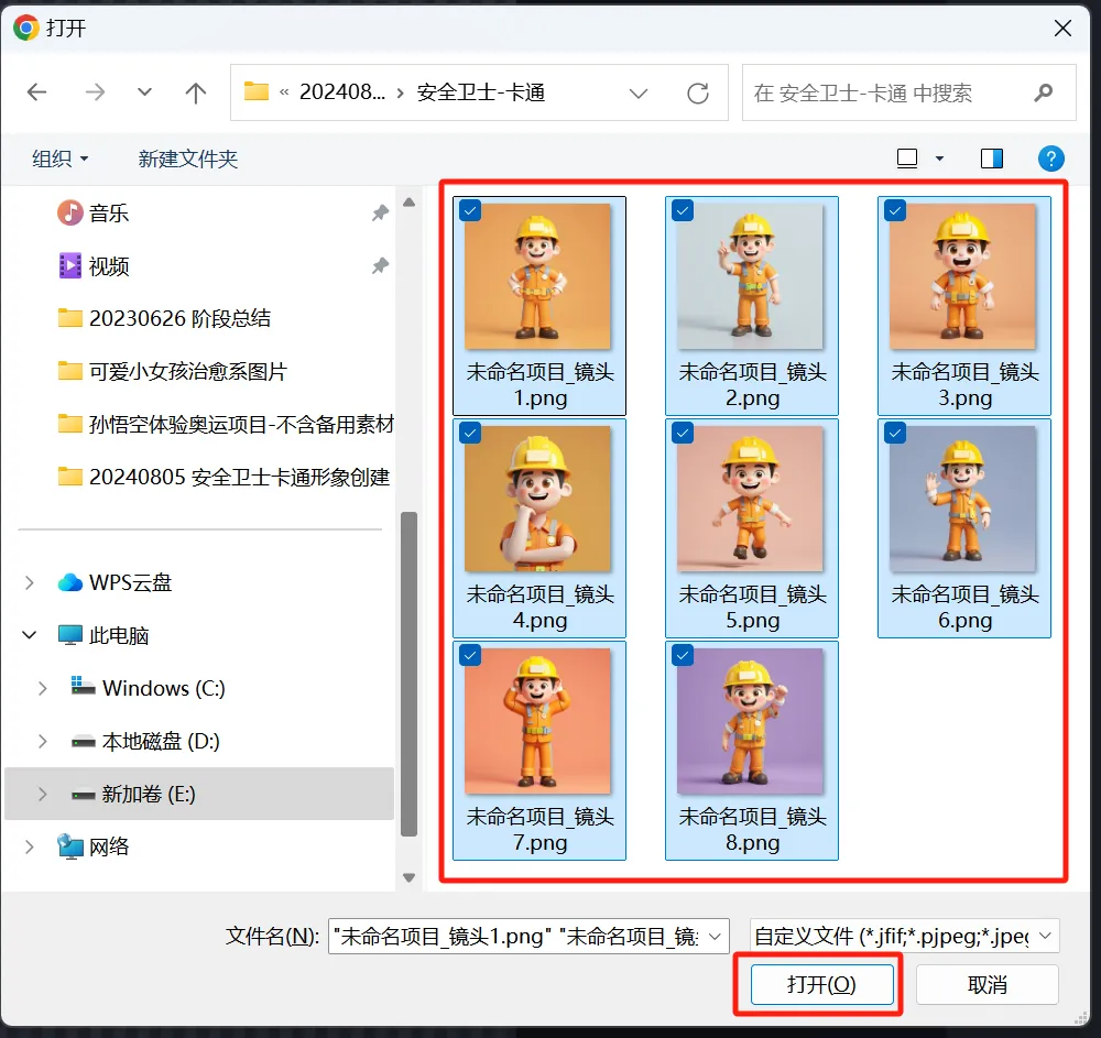 选择刚才做好的卡通人物素材图片,点击【打开】。