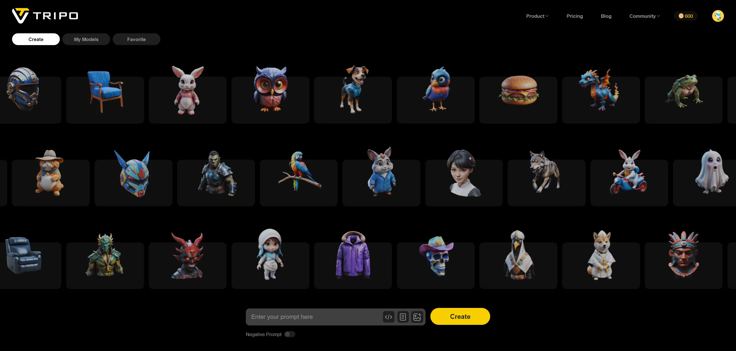 Tripo 注册登录后可免费试用,每月免费赠送 600 积分,生成一次耗费 60 积分。如需更多积分可购买付费方案。