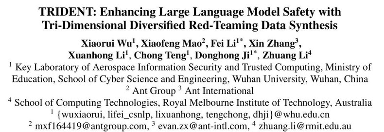 - 论文标题:TRIDENT: Enhancing Large Language Model Safety with Tri-Dimensional Diversified Red-Teaming Data Synthesis