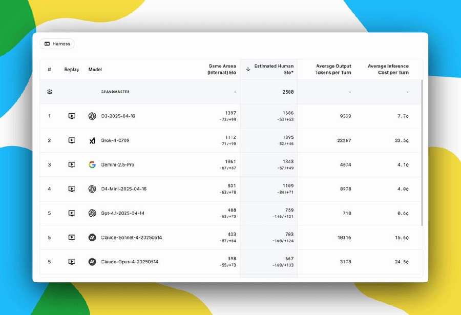 OpenAI o3独占鳌头,Grok、Gemini位列榜眼。
