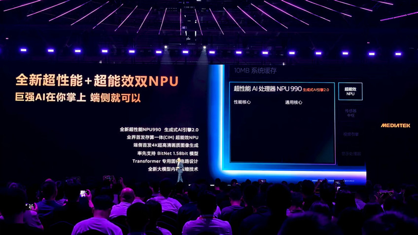 此次联发科直接从芯片底层架构动刀,采用了突破性的双NPU架构,一颗性能极强的NPU990与一颗能效出色的超能效NPU相结合。