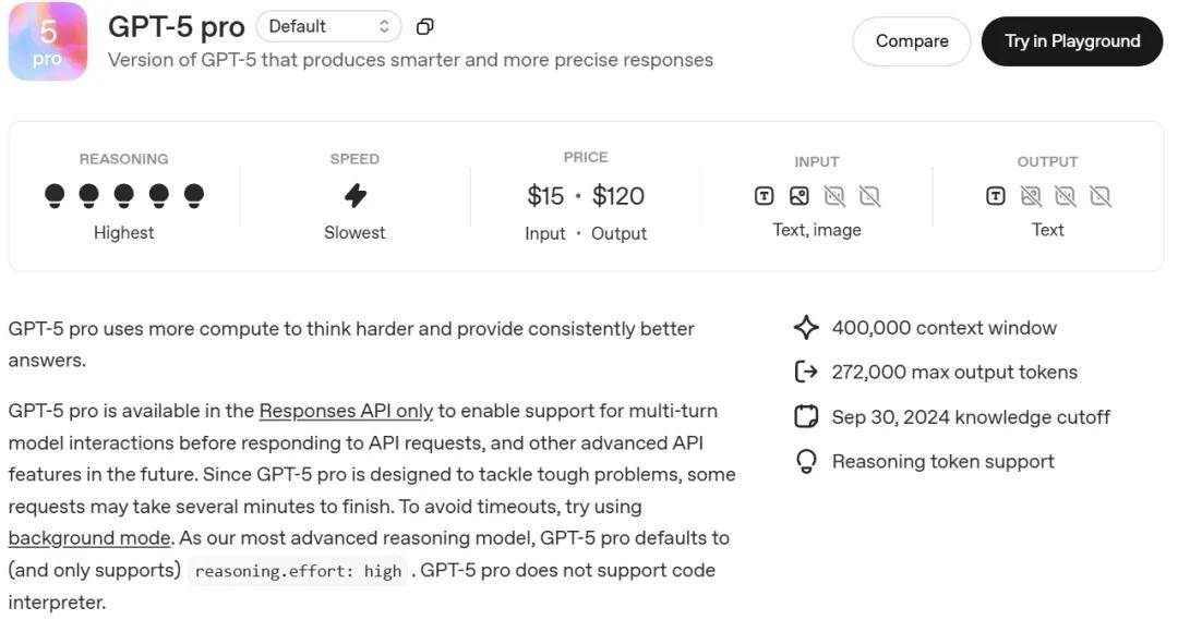 强大推理模型 GPT-5 pro 的 API 也已经上线: