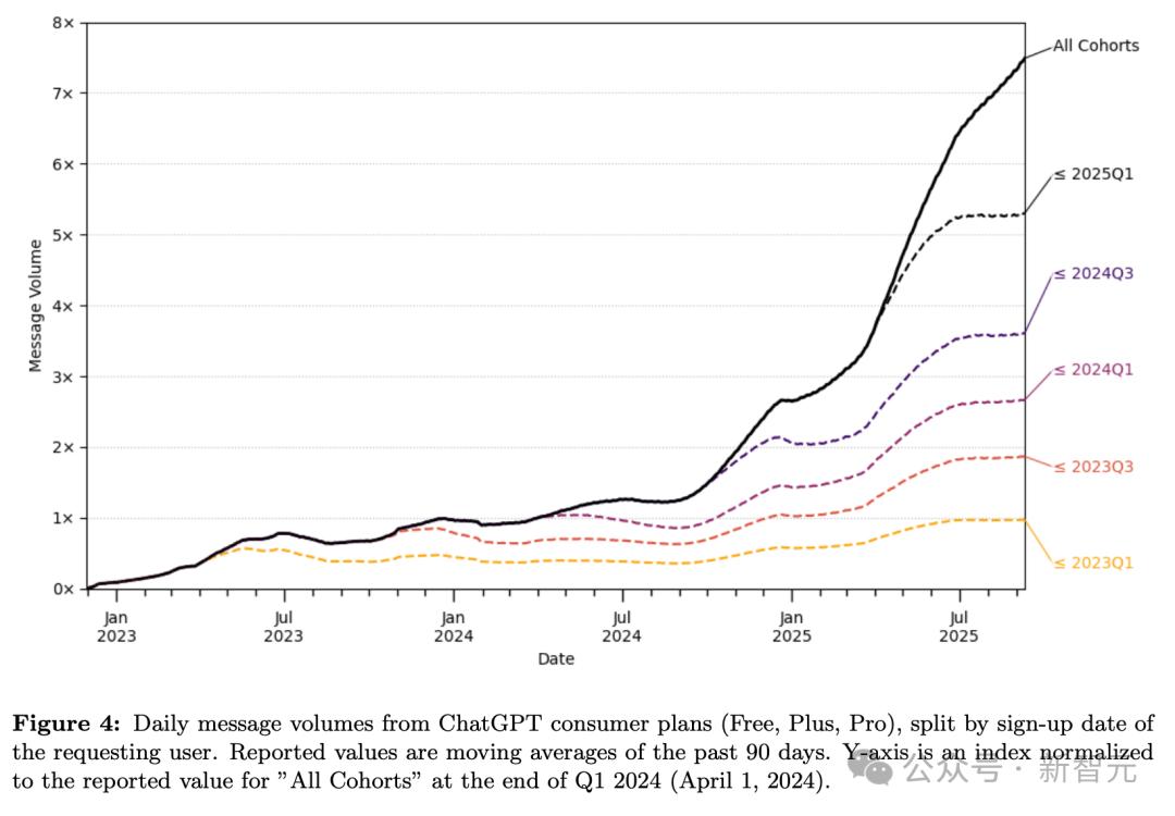 - Growth数据:2022年11月-2025年9月,所有付费用户每日消息总量,以及基础人口统计信息