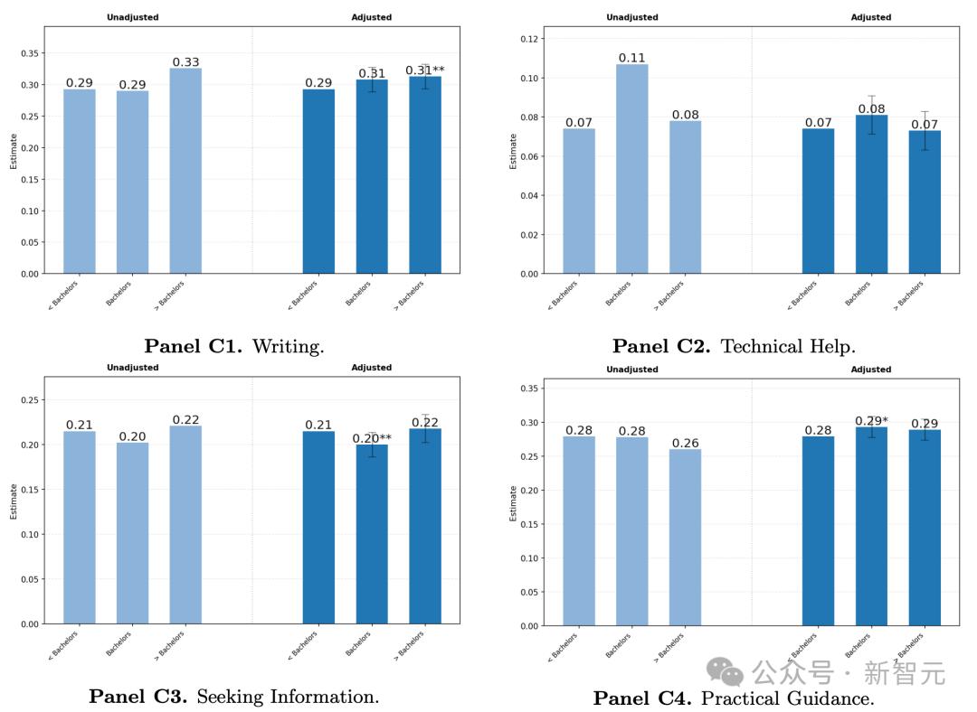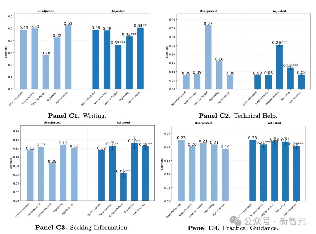 尤其是,技术类岗位,比如计算机、工程,更倾向于向ChatGPT提问,而非执行具体操作。