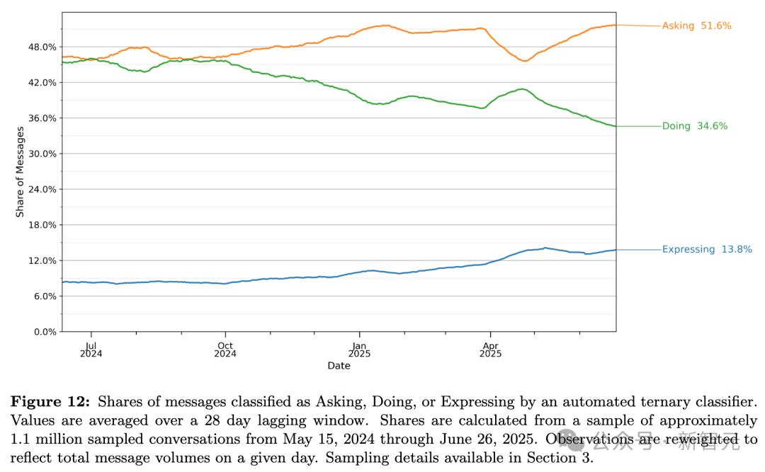 OpenAI研究采用了更科学的方法,即基于内部对话数据,并使用自动化分类结合隐私保护技术展开分析。