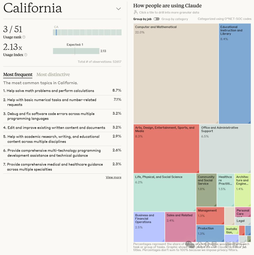 而且,华盛顿DC、犹他和加利福尼亚,人均Claude使用率美国前三。