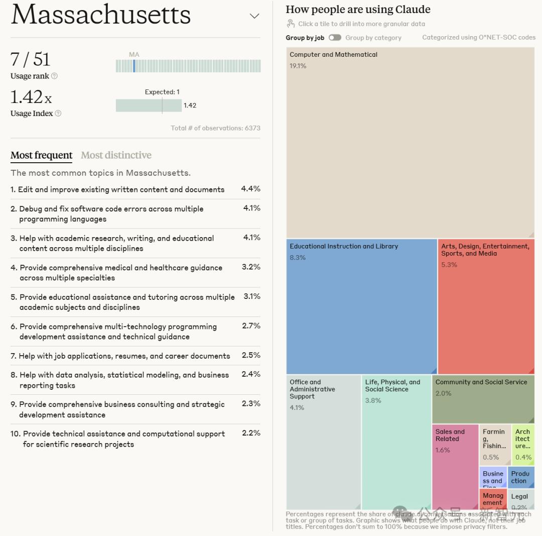 - 马萨诸塞州的用户向Claude请教科学研究问题的频率,要远高于其他地方;