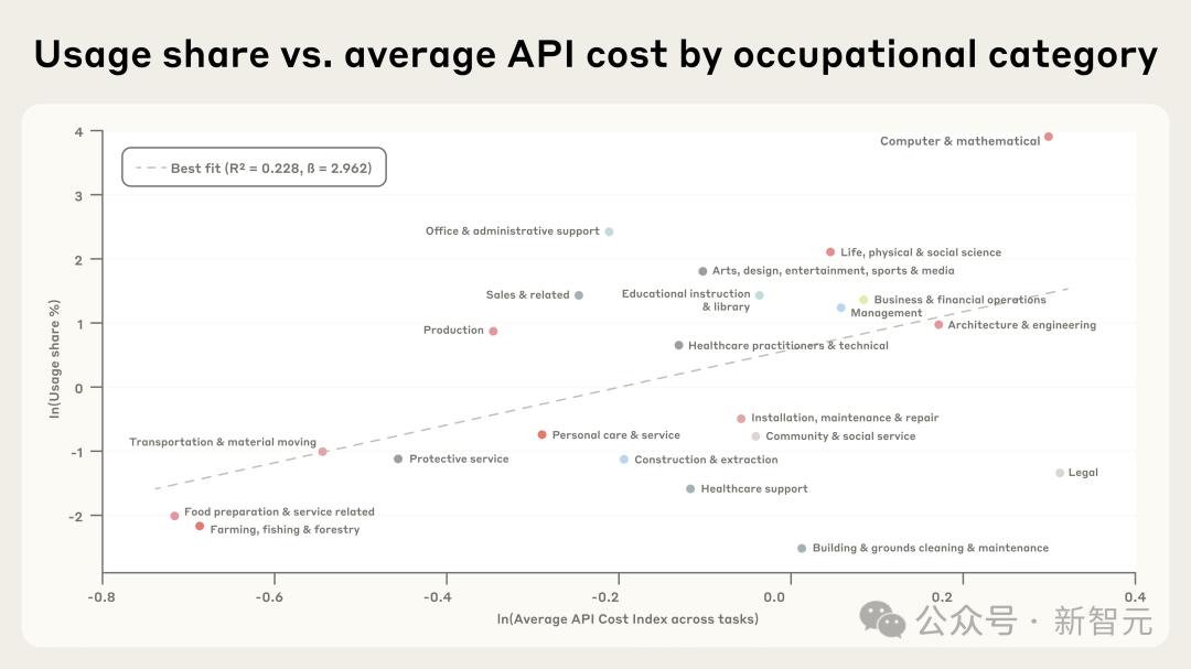 报告发现,成本越高的任务类别(通常意味着更复杂、更有价值),企业反而用得越多!