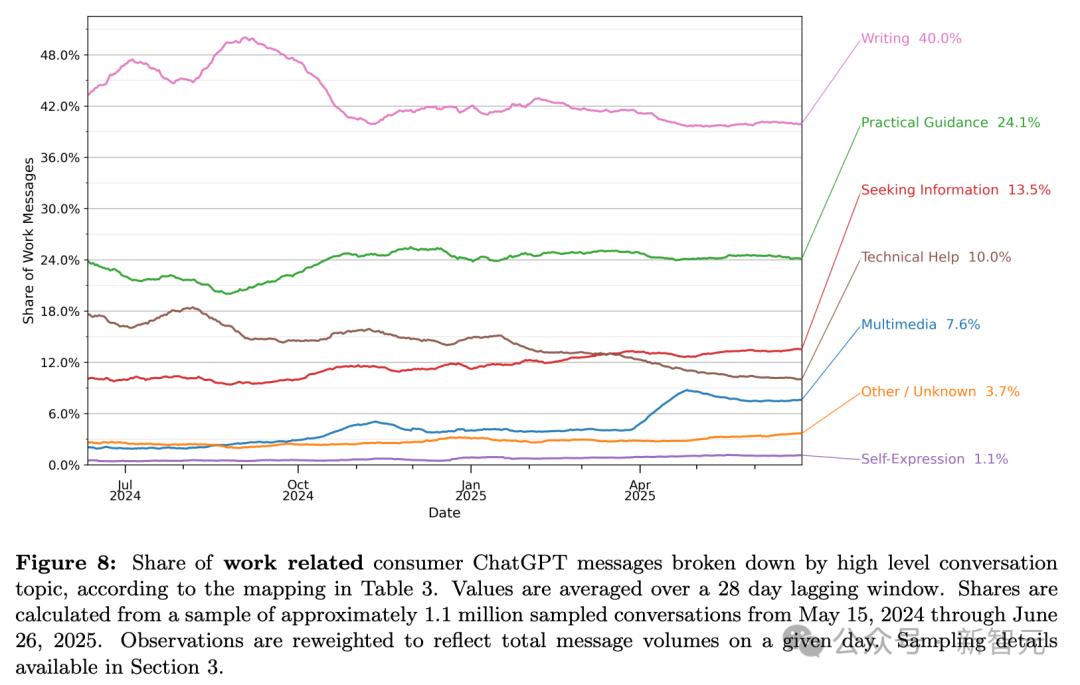 有趣的是,技术类问题,比如编程使用比例,从12%骤降至5%。OpenAI分析称,很多开发者直接调用API、其他AI工具写代码,比如Codex。