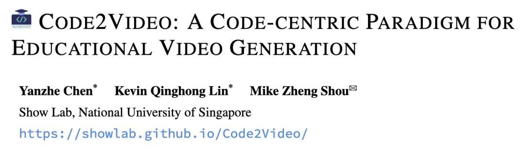 - 标题:Code2Video: A Code-centric Paradigm for Educational Video Generation