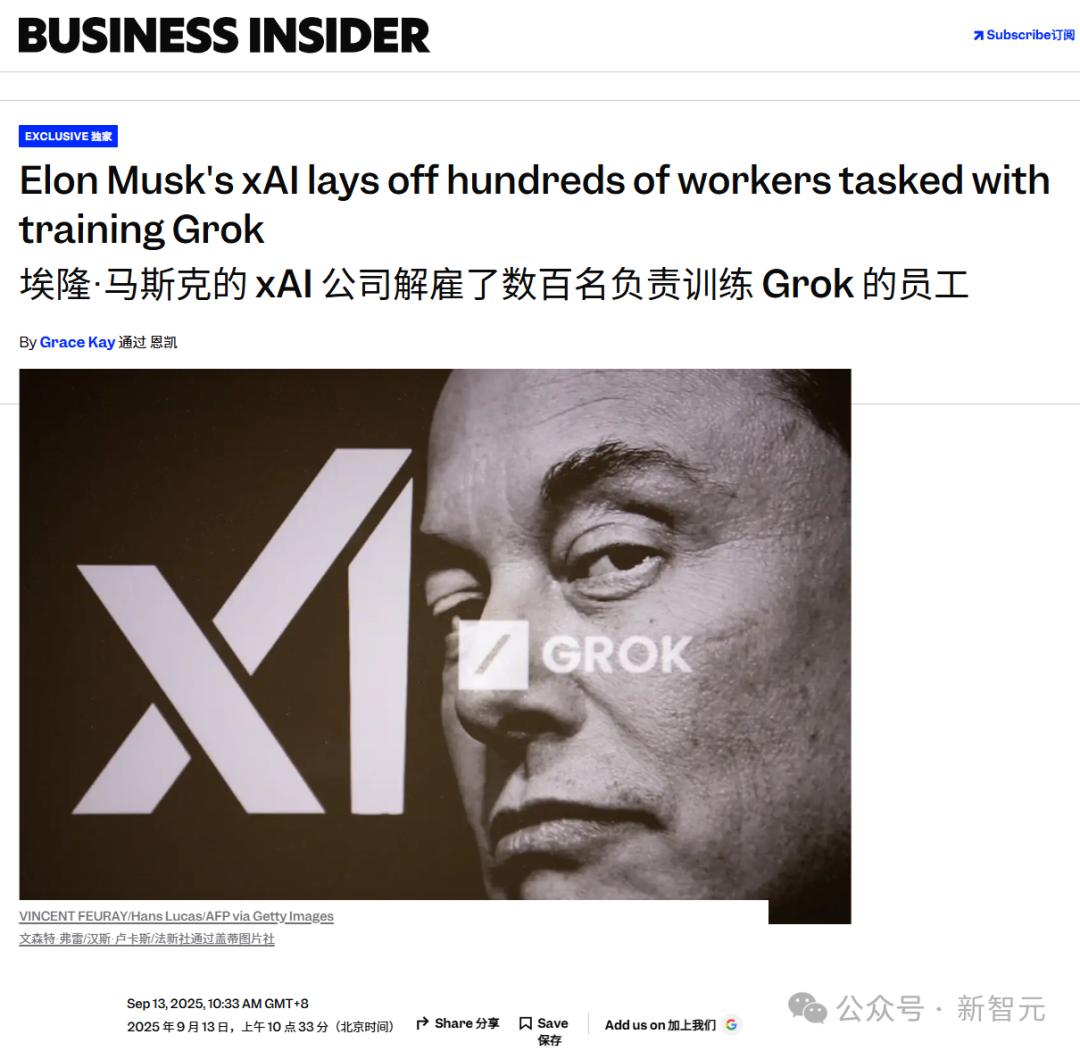 据BI昨日报道,周五深夜,xAI突然裁掉了约500名数据标注员,占团队三分之一。