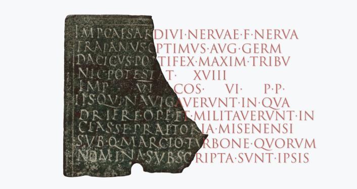 图1 由Aeneas修复的,公元113/14年来自萨丁岛的青铜军事命令,由皇帝Trajan授予一艘战船上的水手
