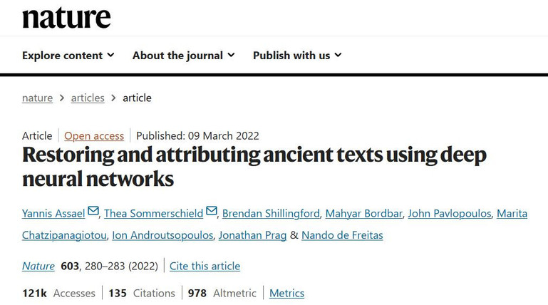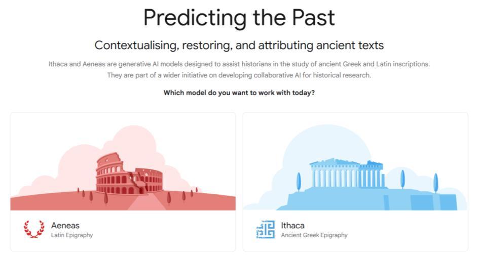 在Aeneas出现之前,2022年Deepmind推出了Ithaca,这是一个基于深度神经网络预测古希腊铭文年代,并补全缺失文本的工具。