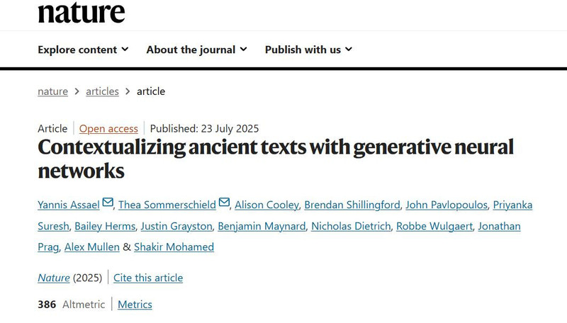 出现在7月24日Nature主刊的Aeneas则是一个多模态生成式神经网络,它能帮助历史学家更好地解读、归属和修复残缺文本。