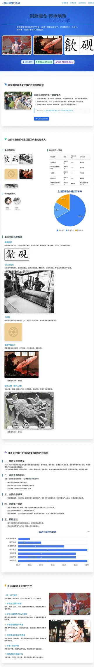 随后,CoCo通过联网搜索,深入解读相关政策文件,并系统汇总2021年至今上饶市非遗文化资源与活动案例的权威信息。