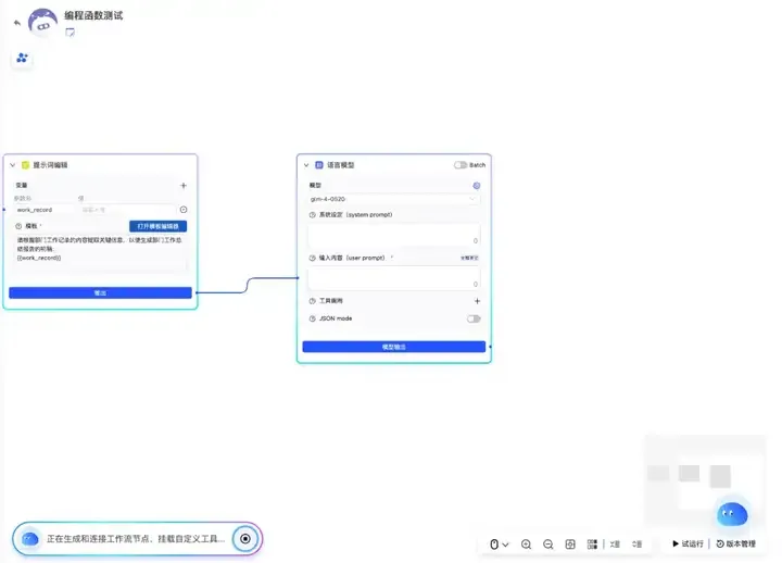在流程调试时,用户还可以通过拖拉拽等操作对工作流节点进行编辑调试,使流程逻辑更清晰直观。调试完成后,工作流可被封装为可复用的MCP工具。