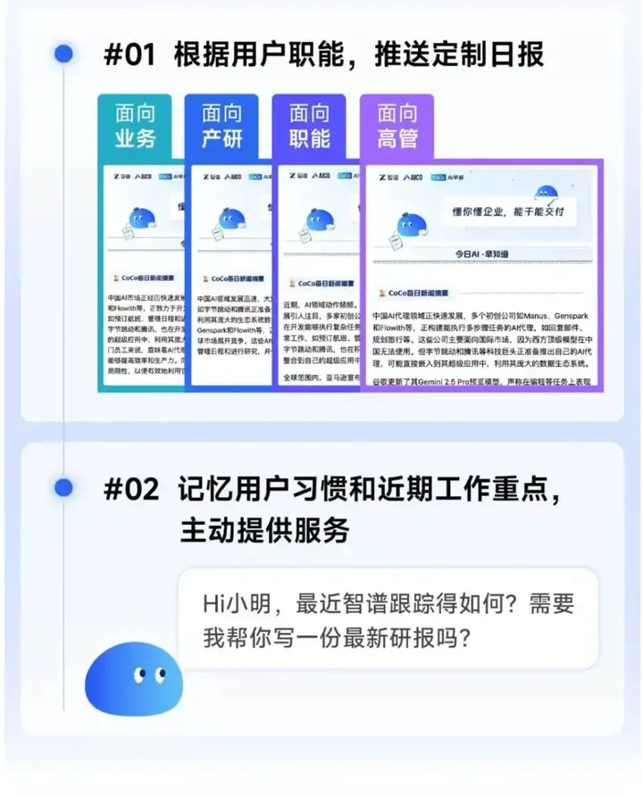 如CoCo能根据用户预设的职能角色(业务/产研/高管/智能),动态生成高度定制化的日报并精准提炼关键信息。