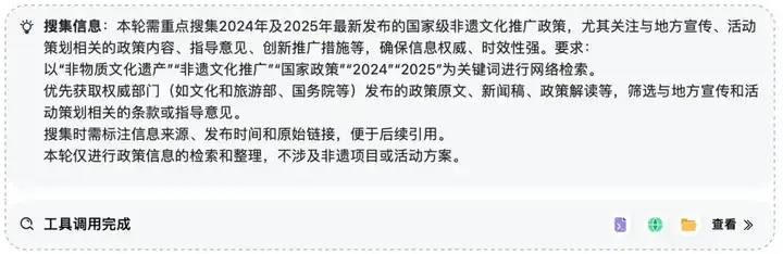 在政务场景中,当用户向CoCo下达指令,要求其结合最新国家非遗文化推广政策,策划一项6月份江西上饶文旅宣传专项活动时,CoCo会首先解读用户需求,并自主进行任务规划,将整体计划拆解为11个具体小任务。