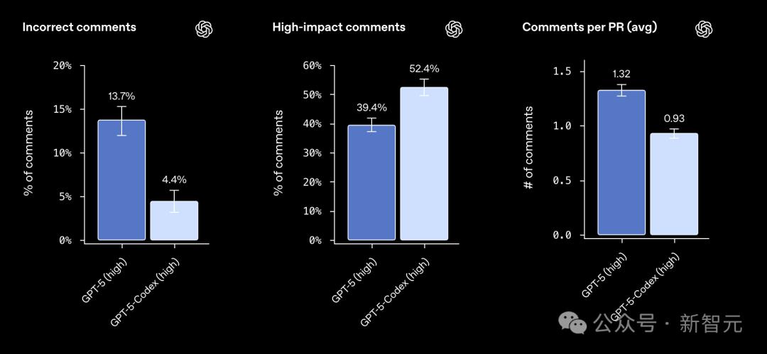 按照OpenAI的说法,他们发现GPT‑5-Codex生成的评论更不容易出现错误或不重要的情况,从而让用户能将更多注意力集中在关键问题上,比如: