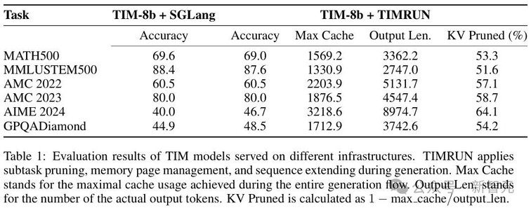 在生成过程中,TIMRUN就像一个内存管家,只保留当前最需要的token键/值状态,可以反复利用推理中的位置编码和GPU内存页。