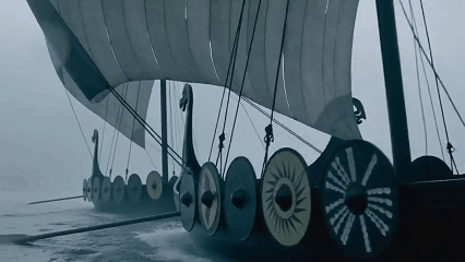 Prompt: Vikings Go To War — North Sea Launch (10.0s, Winter cool daylight / early medieval)