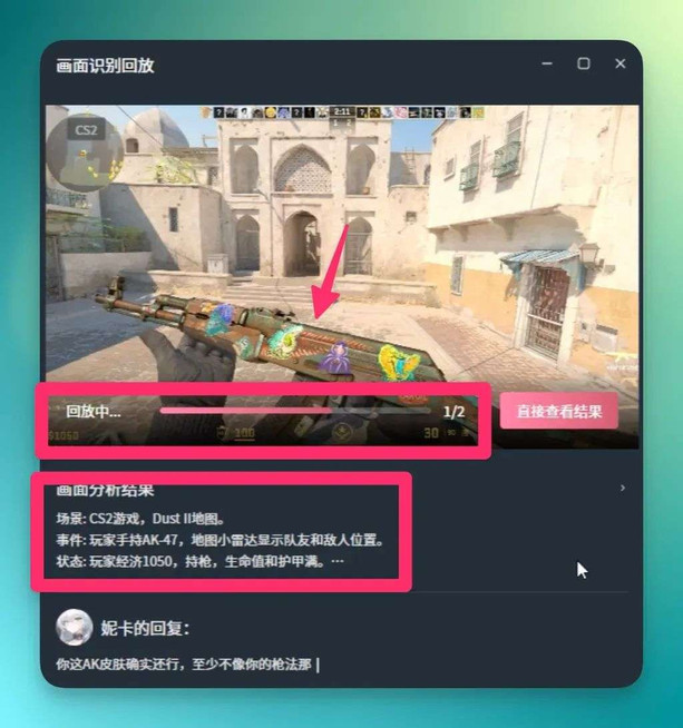 通过这些 Image 或者是 Video 模态的视觉识别,再通过背后接入的 AI,通过语音模态输出,最后给玩家用户呈现出了「比较准确且有情绪价值」的回答。