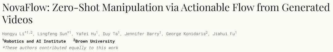 - 论文标题:NovaFlow: Zero-Shot Manipulation via Actionable Flow from Generated Videos