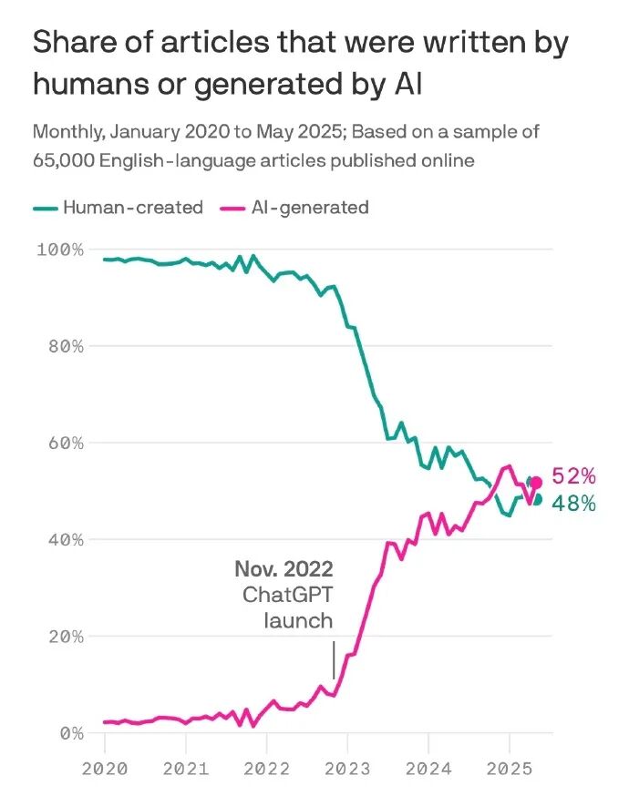 最近一个调查数据显示,互联网上 AI 生成的内容首次超过了人类。而实际上,我在各大社交和视频平台上看到的 AI 造物也越来越多,甚至不少上了热门榜。