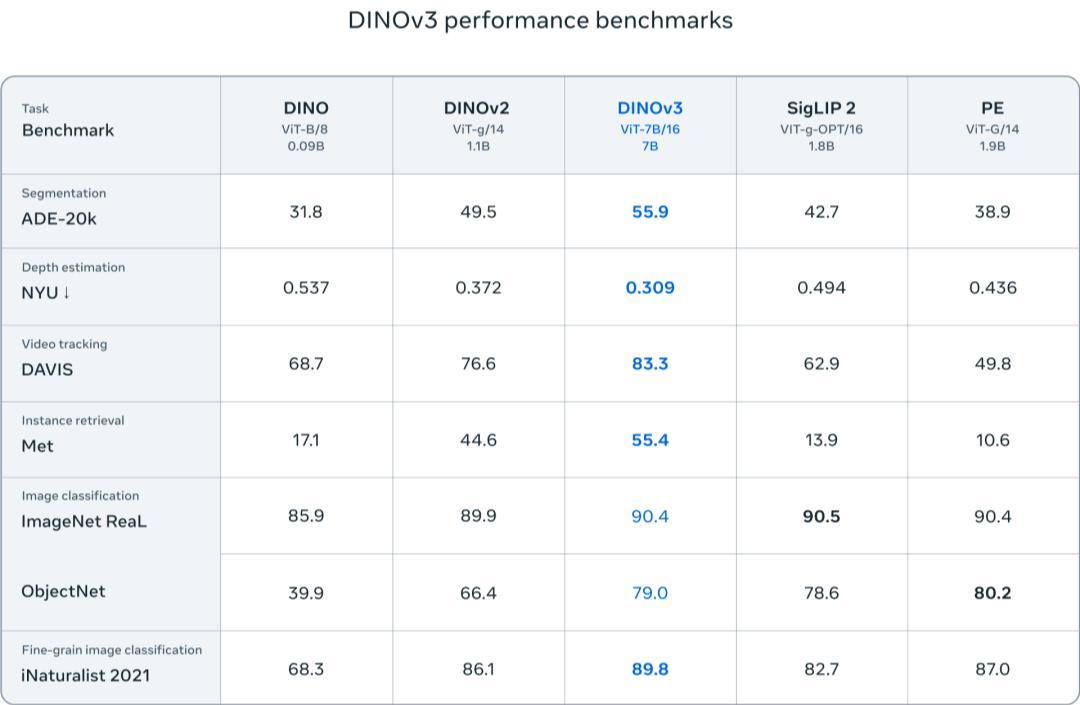 DINOv3重新定义计算机视觉性能天花板,在多个基准测试中刷新或逼近最佳成绩!