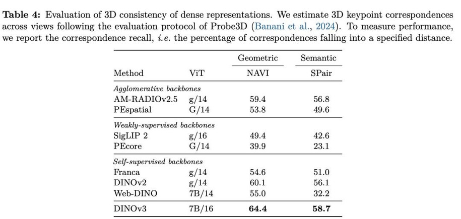 在各种密集预测(dense prediction)任务中,DINOv3的骨干网络表现出色,展现出对场景结构和物理属性的深刻理解。