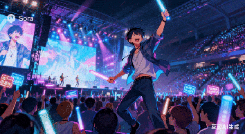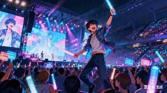 Prompt:激动得满脸通红,眼睛瞪得极大,双手捂住脸,不敢相信,随后又疯狂地挥舞手中的荧光棒。