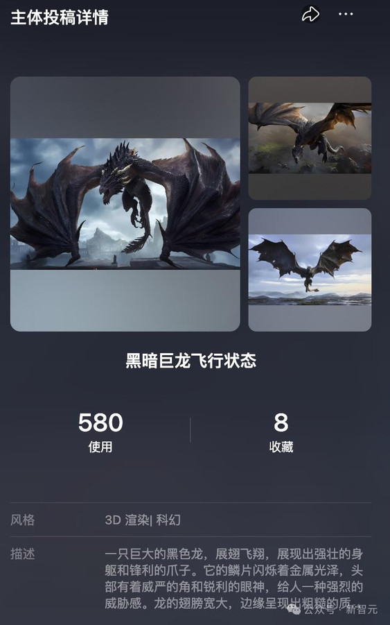 比如,「星辰研究所-微BT_buding」投稿的「黑暗巨龙飞行状态」,上传了三张不同角度的图片。