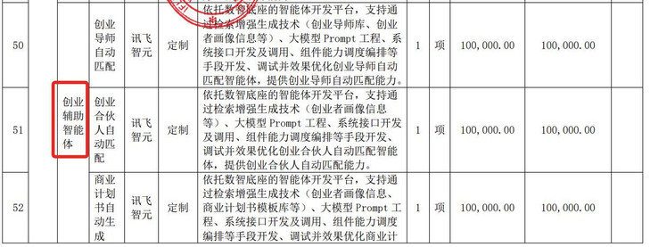 以AI+人社为例,该方案引入了创业辅助智能体,依托数智底座,支持创业导师自动匹配、商业计划书自动生成、商业计划书自动生成等服务,报价90万元。