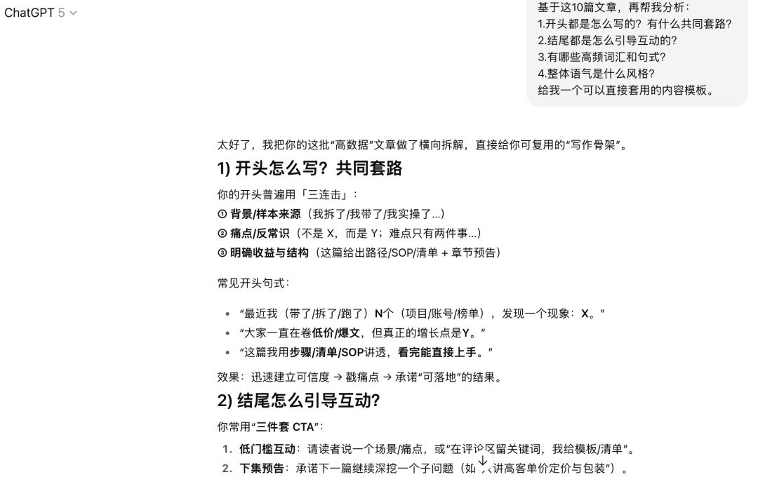 现在用AI,10 分钟就能分析完爆款笔记,找到选题规律、内容结构、话术特点。