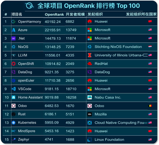 而在全球开源项目影响力排名中,OpenHarmony 以绝对优势位居第一,TOP100 中,中国有 9 个开源项目上榜,这也体现了中国开源从使用走向了贡献。
