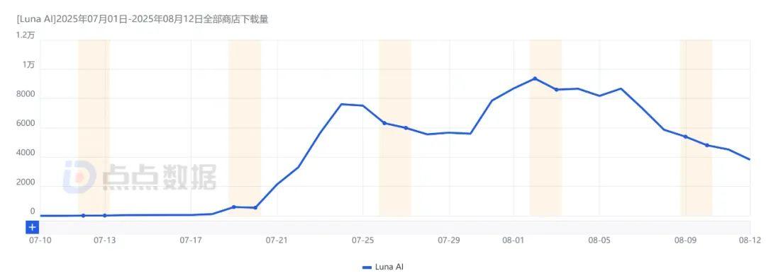 Luna AI上线一个月下载量变化(来源:点点数据)