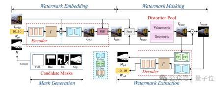 研究人员引入了一种掩码机制,训练时告诉模型“水印藏在这里”,教它学会精准地嵌入和提取。