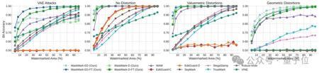 通过简单调整失真层或进行少量微调(如针对VAE自适应攻击,仅需20k训练步数),MaskMark即可适应不同鲁棒性需求和新兴威胁。