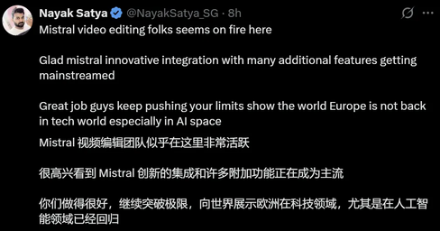 最近 Mistral AI 的动作确实让人看到了欧洲在大模型领域保持追赶的势头。对此,网友们表达了对 Mistral 快速追赶的兴奋。