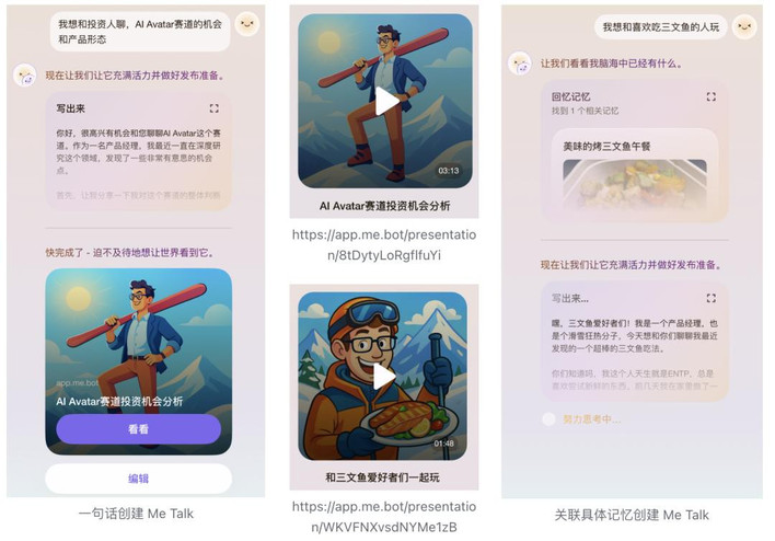 Me.bot 不是简单的聊天记录工具,而是一个多模态的数字记忆构建平台。用户可以通过文本、语音备忘录、图片、网页收藏、文档上传等多种方式,持续“喂养”自己的 AI 分身。这种设计打破了传统 AI 多数处理对话文本作为 Memory 的局限 ——毕竟,真实的“我”远不止文字表达那么简单。
