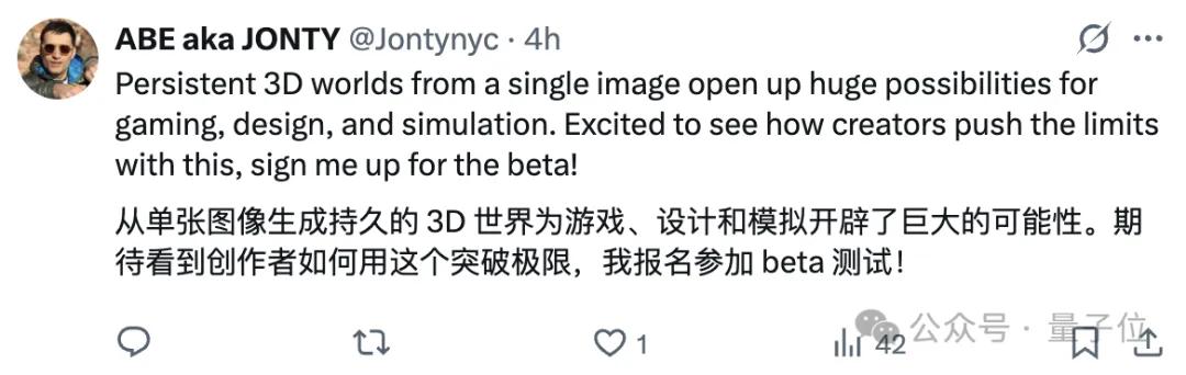 与之前可加入对象和角色的模型不同,当前的模型专注于构建3D环境,模型表现让众多网友赞叹——太强了!想要报名!