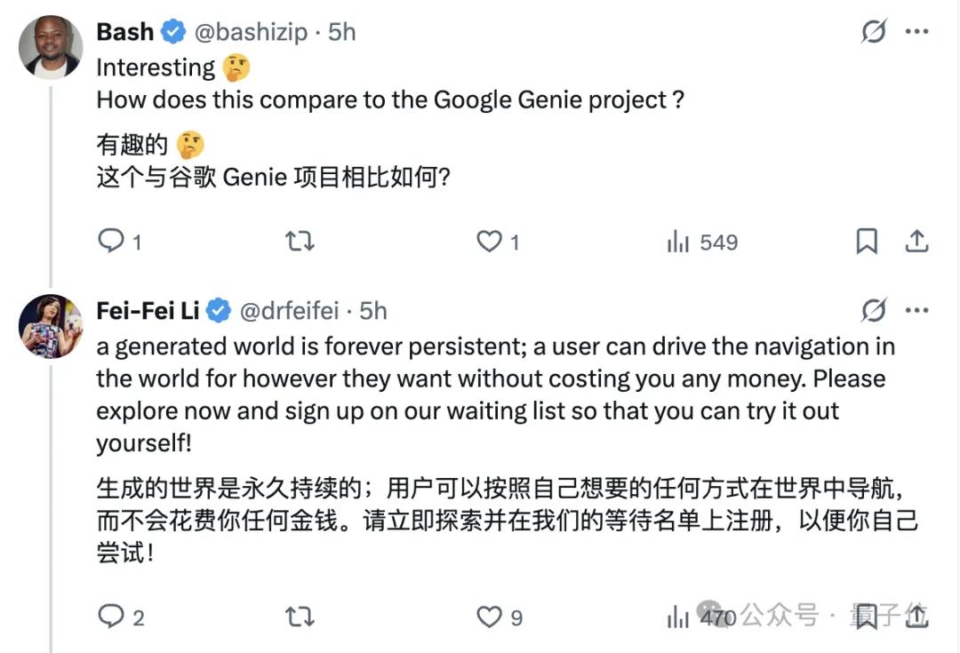 同样是优秀的世界模型,李飞飞团队的世界模型难免让网友想到谷歌的Genie。